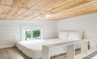 This custom built “tiny home” has all the features of a regular house. The main level has a sitting area with sofa. The full kitchen offers microwave/oven, electric cooktop, refrigerator and farmhouse sink. There is a full private bathroom with a shower, vanity/sink and a toilet inside each tiny house. The stairs lead to a cozy sleeping loft with queen bed. There is also a wooden deck with built in benches. You will love this quaint, cozy home as a nice getaway!
