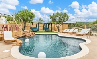 Infinity Ranch features a beautiful resort style pool (unheated), clubhouse, covered pergola with, BBQ's, outdoor games, fire pits & an enclosed dog park. Secluded and quiet, yet conveniently located near wedding venues, wineries, etc in Dripping Springs.