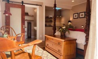 The Garden Room is a licensed, centrally-located, and peaceful studio. Full of hand-crafted, vintage, and one-of a kind decoration and details, this space was designed with love by all members of our family. We look forward to hosting you in our beloved home town. The Garden Room sits in the ideal location to enjoy all that Healdsburg has to offer. Just a block from the central plaza, fine-dining, wine tasting rooms and so much more.