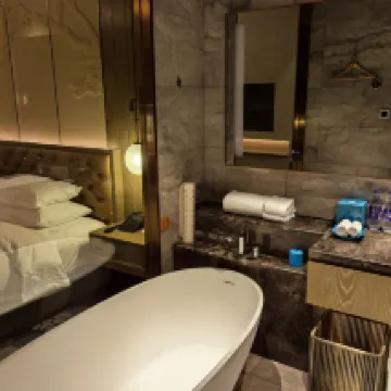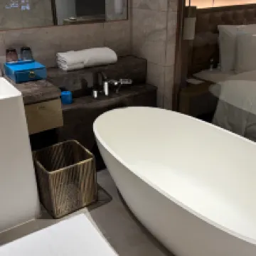 酒店大堂氣派,剛好趕上補貼性價比很高,服務人員熱情周到,前台辦理入住速度很快,不拖泥帶水,一看就是受過專業培訓的,房間衞生也比較乾淨,基本沒有什麼衞生死角,房間還有個大浴缸,窗簾也是電動的!特別表揚一下酒店的賓客服務經理,從入住就專人對接服務,隨叫隨到,體會到了什麼是五星級酒店的服務,點贊👍