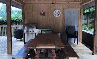Deerfield Cabin is secluded yet 1 block from downtown Helen! We are truly in the center of the city. Come sit on our rocking chair front porch or huge patio, enjoy the firepit, play a game of cornhole or horseshoes. You can grill under our pavilion, keep your drinks cold in the fridge and eat at our custom made picnic table. You can listen to the subtle sounds of music and laughter while feeling secluded from it all or, walk a block and you can be right in the middle of it all! The best of both worlds. Park your car in the driveway and you won't need it again until you leave. Everything is close, shopping, restaurants and bars with fabulous food or walk 2 blocks to Betty's Country Store and pickup whatever you need, such a cool store to visit.So much to do and see just steps away. About pets:No pets allowed.About checkOut:Flexible check-out available (contact host to arrange).About children:Children allowed: ages 0-17.About customRules:Information about Deerfield Cabin will be sent to.if you move any furniture, it must be moved back i,strip all bed and put soiled linens in the hall, e.About checkIn:Flexible check-in available (contact host in advance of arrival).About smoking:Smoking is not permitted.About minBookingAge:Minimum age to rent: 25.About events:Events allowed: family gatherings, birthday parties, weddings.Maximum event attendees: 20.
