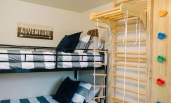 The fully stocked kitchen, comfortable beds with extra bedding, climbing wall, and the at-home gym will be sure to make your stay more enjoyable!