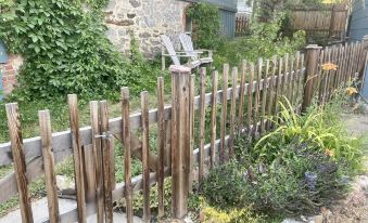 This street level apartment features two bedrooms with new mattresses, a fully equipped kitchen, and great outdoor space with views of the mountains. Enjoy a personal fenced-in yard or the shared garden space with the grill and picnic table. We had fun furnishing this space with a mix of vintage and modern furniture and some of our favorite artwork and handmade lighting. Get in touch with the host if you want to know more about the artwork that fills the space or more about the local art scene!About pets:Pets allowed: dogs (limit 1 total).Only one well-manner dog is allowed. No cats..About checkOut:Check out before 10:00 AM.About children:Children allowed: ages 0-17.About customRules:The house was built in 1890 and plumbing cannot tolerate any feminine products. Thank you for respecting this house rule!.About checkIn:Check in after 4:00 PM.About smoking:Smoking is not permitted.About events:No events allowed.