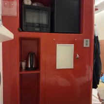 這真是個不錯的住處。你不會在這裡看到任何工作人員。他們提供無限量的茶包、咖啡、糖和奶油。唯一的缺點是房間裡沒有可以打開的窗戶。