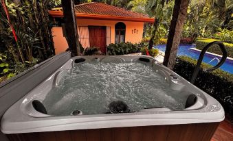 這座美麗、設備齊全的獨棟住宅位於 Los Sueños Resort and Marina 專屬封閉式生態高爾夫社區,佔地 4000 多平方英尺,是您的理想之選。穿過擁有蔥鬱室內花園的宏偉庭院,欣賞哥斯達黎加風格的建築風格。走進寬敞的用餐區,即可進入寬敞的起居室,從客廳可以欣賞到異國情調的花園、山脈和高爾夫球場的壯麗景色。住宅擁有設備齊全的 Master Chef 廚房,配備商用電器,以及一個設施齊全的戶外廚房,內設休息區、爐灶、冰箱、水槽和燃氣燒烤爐,可滿足您所有的烹飪需求。繼續走到戶外,您可以在無邊際私人泳池中暢遊,或在涼亭的吊床上放鬆身心。