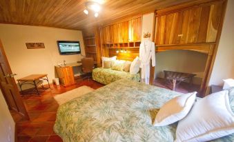 柚木套房配有 2 張大號床和 1 個設施齊全的浴室。這間客房也可穿過內部花園進入。