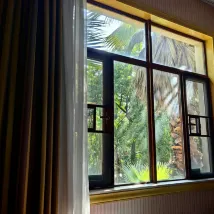 設施:房間還可以,就是窗户太不行,基本關不上,把手都沒有了 衞生:還比較乾淨 環境:環境好,真是世外桃源,空氣特別好,安靜, 服務:還不錯,餐廳比較大