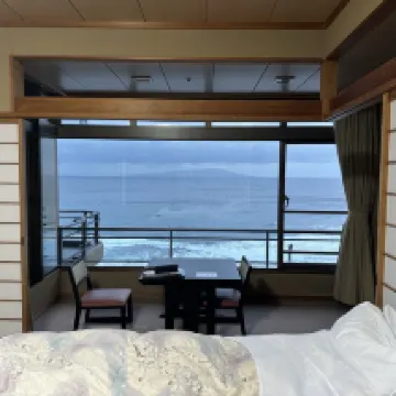 位置處於海邊,周邊環境優美,如果天氣好,房間正東剛好可以看日出,但是入住的二晚剛好陰天或𠕇小雨,有點遺憾,浴池露天,泡温泉非常舒服,接送司機十分方便,缺點就是房間設施略顯成舊,早餐定食一般。