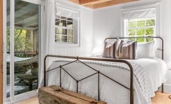 Parking is available for two cars directly next to and across the street from the cottage. Additionally, while each entrance requires a 2-5 step climb, the home is entirely one level with the exception of the loft space accessible by ladder.