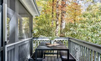Kick back and relax in this calm, tasteful Highlands gem. Nestled in the Mirror Lake neighborhood among hemlocks, pines, rhododendrons and oaks, our cozy rental cottage has the best of all that Highlands, North Carolina has to offer. Newly renovated in 2022 with a screened-in porch and fire pit, this luxury cottage is the perfect spot for a getaway. Just a four minute drive to Main Street in downtown Highlands or walking distance through neighborhood streets and trails.