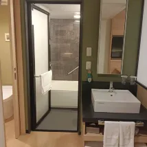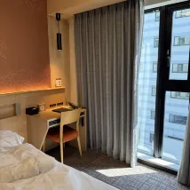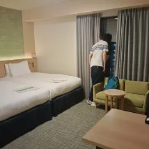 這家在姬路站的南口,比較安靜。價格相對北口的酒店便宜很多,周圍也都是商務樓。應該是新開的酒店,所以設施很新,明亮,寬敞。 雙床房間很大,衞生間也是三分離的,還有個簾子,床也很大感覺可以一家三口住。 前台都是帥哥美女服務不錯,退房時還幫我打電話約了後面行程需要的車子。