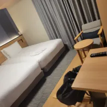 位置離車站不遠,走路不到十分鐘。設施可以,也很乾凈。選的雙床房,房間大小剛好合適。不會特別小,而且還是乾濕分離。價格也合適比起周圍酒店很推薦這裏。給的房間在頂樓很不錯。