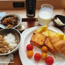 房間乾淨整潔,工作人員熱情友好,房間大小也合適。便利設施就在前台旁邊,你可能會想:“我應該買這個的”,但“自己去拿太麻煩了”,所以在點之前要三思。早餐非常美味。工作人員的服務也很好。星鰻涮鍋非常美味。不過,因為是工作人員親自下廚做的,所以很難再點第二份,不過真希望我當時點了另一份。杏仁吐司很棒,姬路關東煮也非常美味。味噌湯是自製的,用料豐富,所以蔬菜湯也很不錯。章魚飯也很棒。自助餐場地內外都提供外帶杯和咖啡機,這點很棒。由於飯店位置在車站對面,所以很難評價地理位置。不過,客房對面的走廊延長線上有一扇大窗戶,從大窗戶延伸出一條彷彿與走廊相連的道路。雖然位於三樓,但感覺很寬敞,很有格調。我以後還會再來這家飯店。