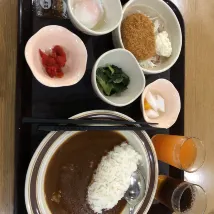 離車站非常近的酒店,衹有幾分鐘的路程,關鍵是價格便宜還包早、晚兩頓餐,餐食屬於定食,有咖喱飯套餐和炸雞塊套餐兩種任選,開始還有點不敢預訂,但覺得試試看吧,反正就一天……遇見很多小學和高中