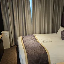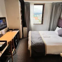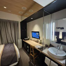 房間非常乾淨,浴室和衛生間也維護得很好,住起來很舒服。 雖然飯店臨街,但我住的那個工作日晚上很安靜,人車都很少。 一樓還有一個方便的入口,可以直接通往隔壁的便利商店。 如果我再來廣島,我一定會再入住這家飯店。