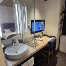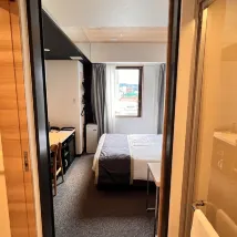 房間很乾淨,但佈置很不方便,臥室裡有水槽,淋浴和廁所是分開的。 從廣島站步行過去要走很長一段路。最近的交通工具是電車,但 JR 通票不包含該車,所以我最終需要額外付費才能往返車站。您必須從接待處領取自己的盥洗用品。住一晚還可以,但不會住更長時間,因為沒有地方存放行李箱,只能把它放在門口。