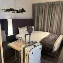 兩位一個28吋行李箱,房間寬敞,床好睡,浴室也寬敞,附近也熱鬧,下次可再回訪!! 附上行李箱照片比例尺😃