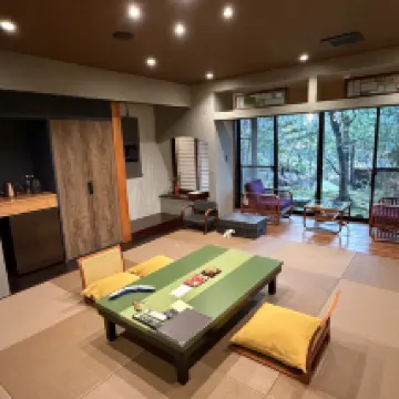 物有所值的一泊二食方案,滿足對日式温泉酒店所有的想象。房間很大很舒服,靜謐山林,雖然房間沒有淋雨,但是隨便去個公湯或者預訂一個私湯都可以洗澡。私湯各有特色和景色,公湯可以看到瀑布。餐食精緻美味,本地食材,精細烹飪,精緻擺盤。服務人員很禮貌,每次都會問好,有英文很好的服務人員,無障礙交流,可以幫助你把行程安排得很好