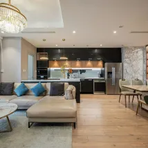 The apartment was beautifully decorated with a modern touch. I especially enjoyed the floor to ceiling windows that offered an amazing city skyline at night. The bed was super comfortable, and the air conditioning worked perfectly. The location was convenient with shopping malls and restaurants just a short walk away.
