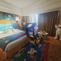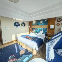 設施:小童主題房佈置很受小朋友的喜歡,太空房還有投影,細節滿滿。但確實可以看出來酒店的年頭了,房間是真的算小的,卧室和衞生間都不大。浴室噴頭建議換成可以拿下來的,給小朋友洗澡用固定的噴頭真的很麻煩。 服務:迎賓主動幫忙拿行李,前台辦入住都很順利。 環境:隔音感覺超級好。不知道是我的樓層入住的人少還是怎麼的,我們比較靠近電梯,但基本沒有聽到過隔壁或者樓道的聲音,這一點加分很多。 停車:前台錄好車號,每天出入很方便。