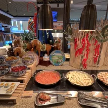 國慶長假,全國各地來呼和浩特的遊客,絡繹不絕,香格里拉大酒店把節日的氣氛裝點得很喜氣洋洋,讓客人精神氣爽。前台李超笑迎賓客,有條不紊的接待客人,業務熟練,辦事效率高,讓客人很快拿到房卡,倍感親切與温暖。21樓行政酒廊,環境優美、菜品精緻,服務周到、細緻,很適合朋友聚會,商務洽談。泳池水温舒適,水質清澈見底,且這裏服務好,設施齊全,游完泳在泡水池裡很舒服。在香宮吃一頓粵式自助點心,很正宗、很精緻,服務很周到、很貼心,環境很舒適,用餐後,讓人流連忘返!
