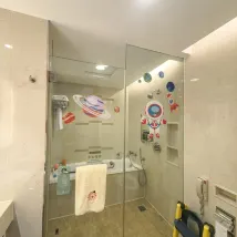設施:很適合帶娃出行,特別友好的寶寶設施,例如適合孩子高度的廁板、小樓梯,孩子洗漱用品及玩具等等。 衞生:眼見範圍都是乾淨的 環境:燈光柔和很舒適,房間安靜 服務:很感謝焦焦的細心安排,兒子的生日過得特別順暢及愉快。房間佈置温馨,服務到位,兒子愛不惜手,可以再來🥰