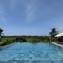 住宿方回覆: Dear Our valued Guests,Warmest greetings from Legacy Hoi An Resort !Thank you for taking the time to share your lovely review. We’re delighted to know that you enjoyed your stay with us and appreciated the peaceful farmland surroundings, as well as the convenience of our shuttle service to both the beach and the Old Town.It was truly our pleasure to be part of your special birthday celebration. We're so glad to hear that you were happy with the surprise cake and the attentive service from our team. Your kind words are a great encouragement to all of us, and we’re also pleased that communication in English helped make your experience smooth and enjoyable.We hope you had a memorable holiday in Hoi An, and we would be honored to welcome you back in the future for another relaxing getaway.Warmest Regards,Thuy Linh (Ms.)Front Office Manager