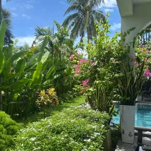 酒店綠樹成蔭但沒有蚊子,員工親切有禮,環境清幽,早餐豐富好吃,有洗衣和代預約到機場的車的服務