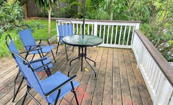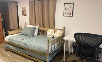 In addition to the basic amenities, the house comes equipped with a coffee machine, fully stocked kitchen tools, and a modern digital sink, juice maker for a fresh cup of juice. In a bedroom, you’ll have a desk/office area to work as well. Outside, enjoy a beautiful backyard with vibrant flowers and plants, plus a spacious area for kids and pets to play. There’s also a deck where you can fish and watch turtles.