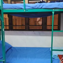 位置非常好!位置非常好!!位置非常好!!! 重要的事情説3遍。 在美麗都大廈3樓辦理入住,進去大樓以後,右轉電梯有單雙層提示。 訂的4人間,上下鋪的那種,房間裏很乾凈,這個價位在香港我覺得很好了,畢竟吃一碗麪都不止這個價了🥹,衞生間和淋浴間在公共區域,裏面有小型香皂和洗手液,房門口有冰箱。 服務態度也挺好,溝通交流沒有問題,辦理入住以後,帶我進房間,示範操作門口密碼,告訴我設施的位置,真的很貼心。 可以在武館後面的露台洗曬衣服,有晾衣架。 美中不足的是我可能敏感肌,覺得床單有點扎。