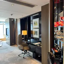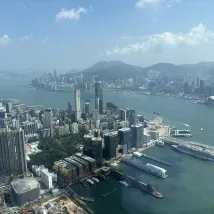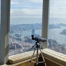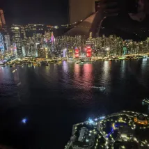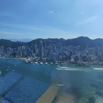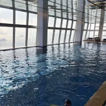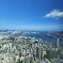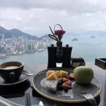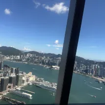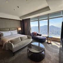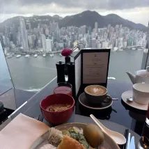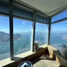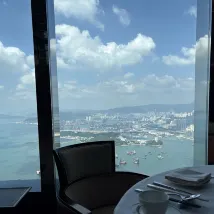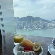 從內地到香港最便捷的酒店,高鐵站出來步行就可以輕鬆走到酒店,下雨天也不怕,非常方便。樓下的圓方商場能滿足吃飯購物的需求,很好逛。我們想用下午茶,103層的西餐廳和102層的大堂吧都有下午茶,西餐廳可以隨時有下午茶套餐,結束時間就比較早,在5:15分。大堂吧的下午茶需要提前一點預訂,沒有預訂的話就衹能點單,可點的東西不多,出品也不是預期的景緻。勝在環境很好,高空視野很開闊,看着海島和海,從不一樣的視角感受香港。中秋節入住,送了月餅和燈籠,延遲退房,這些都感到很滿意。老公帶孩子去游泳,回來説服務人員很殷勤,會幫忙把泳衣清洗和甩幹,服務太細緻了。會再次入住。