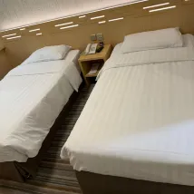 除了位置靠近高鐵站其他一無是處,很臟,水壓不穩、前台服務惡劣、入住登記完證件後啪一下直接甩在前台上、因為前一天換酒店實在太累了、也懶得和她計較了。枕頭很臟,扁薄,床單很薄、空調關了悶熱、開了吹頭、整晚睡不好。總之沒下次。