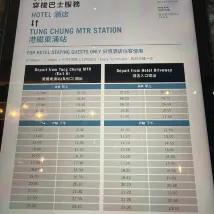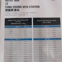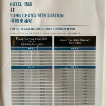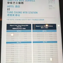 設施:它其實是兩家喜來登連在一起的,隔壁更高級,價格也更貴,東涌類似於國內全季的感覺,房價在香港挺大的,也很舒適,很乾凈 衞生:阿姨很好,喜歡他家的香皂多要了一塊 服務:前台小哥應該是給我升房了,問我是不是會員 早餐:超級推薦,加了100多人名幣,這個價格其實香港吃不到什麼的,早餐中西式都有,外國人比較多都兼顧到了 圖2:shuttle bus的位置 圖3:擺渡車時間,真的很方便