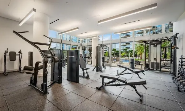 這套高層公寓配備 Silestone 石英檯面、博世電器、全尺寸洗衣機/烘乾機、每間客房均配備分體式空調、所有客房均採用落地玻璃,並設有一個 96 平方英尺(約 9 平方米)的露天陽台,可欣賞城市、海洋、山脈和日落的壯麗景色。此外,公寓還配備兩個並排的帶門停車位和儲物空間,以及設施齊全、高雅的室內裝飾。