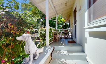 Each cottage has a porch with seating and one has a barbeque grill. Tropical landscaping adds lush ambience.