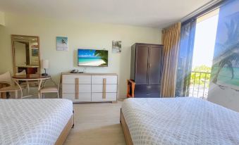 This elevated hotel-style studio features a small/standing private lanai with city views and sleeps 4.