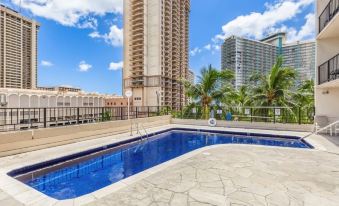 Enjoy sunny palm-tree views from this gorgeous hotel-style studio at the Palms at Waikiki Building. Nestled across the street from Ala Wai Boat Harbor, Hilton Hawaiian Village, Duke Kahanamoku Lagoon, Waikiki Beach, and so much more, our home is walking distance to endless shopping, dining and attractions. Includes an open living area, cozy full bed, private lanai, renovated full bath, and compact closet and kitchenette area. Guests enjoy access to the building's polished lobby, sun deck, pool, bbq area, fitness room, paid parking options and on-site paid laundry.