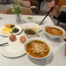 如家精選酒店應該是如家裡麪比較高端的酒店。位置有點偏,但是和田本身也不大,打車到和田夜市也就12塊錢。酒店是新開的,乾淨舒適,房間很大,放行李很寬敞,洗漱台、馬桶、淋浴三分離,小度音箱還算好用。早餐很豐富,涼菜熱菜都有,當然少不了如家那碗麪。