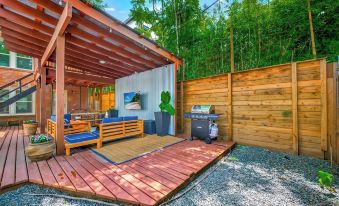 The apartment comfortably sleeps 4 guests. Both bedrooms feature a 65” TV. There is also an outdoor area that is perfect for gatherings.