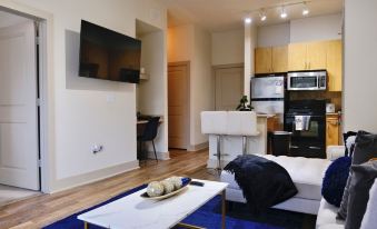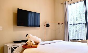 This cute apartment home offers a tranquil retreat with a comfortable queen-sized bed, ensuring a restful night's sleep. Adjacent, the pristine bathroom features modern setup & a refreshing shower to invigorate your mornings or soothe away the day's stresses.