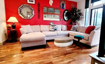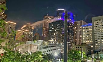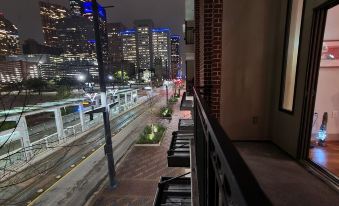 Jaw dropping view of downtown from a private balcony. Modern, eclectic one bedroom apartment in downtown that's close to everything and right next to rail. A 20 minute walk to Minute Maid Park and a 10 minute walk to Toyota Center. Easy commute to the medical center. Just because you're visiting the med center doesn't mean you have to stay there. Unless you enjoy the sound of ambulances. It's a 15 minute train ride or 10 minute Uber which could cost the same as parking at the med center and less of a pain in the ass.