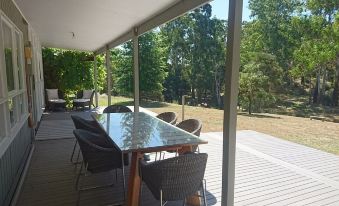 Fronting the Howqua River, the house has unparalleled river views and beautiful gardens. Just 25 minutes from Mansfield. Enjoy the kangaroos, birds, deer, wombats and other animals that abound. Stroll by the river or simply relax on the verandah and be mesmerized by the sound of the stream.