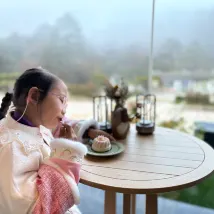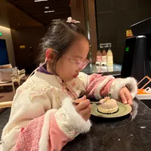 環境超級好,就在妙筆生花旁邊,早上離看日出的地方也不遠,應該算是山頂最好位置最佳的酒店;管家知道小朋友過生日,還特意送了一塊小蛋糕。 教小朋友篆香的老師也是相當有耐心。已經推薦給正準備去黃山的朋友了。