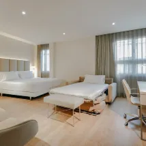 住宿方回覆: Dear guest,Thank you very much for sharing your wonderful feedback. We are delighted to know that our front desk team provided attentive service and that you were able to check in early, as one of your rooms was already prepared upon your arrival.We are pleased that you enjoyed the spacious rooms with a double sofa, the large bathroom, and our excellent location, just 850 meters from the bus station, 270 meters from the Cathedral, and close to the City Hall, shopping areas, Mercadona supermarket, and the English Palace.It is also great to hear that you appreciated our breakfast, with a wide variety of fruits, freshly squeezed orange juice, and hot dishes.We look forward to welcoming you again soon at Hesperia Murcia Centro.Kind regards,Reception Department – HESPERIA MURCIA CENTRO