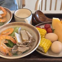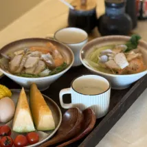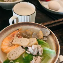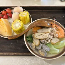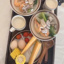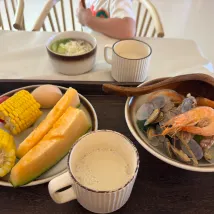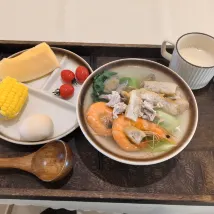 連住的第二天,房間收拾依舊很整潔,洗漱用品都更換了新的 早餐也不錯,分量十足的海鮮麪,外加水果、雞蛋、玉米和豆漿。營養豐富 店裡裝修風格獨特,非常適合拍照打卡,同時提供服裝和道具 管家小胡服務很周到熱情 挺好的一個週末體驗