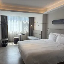 房間簡潔,乾淨衞生,交通方便,附近有不少餐飲店,因為凌晨三點左右入住,前台小哥主動提出來退房時間延遲至16:00,非常貼心