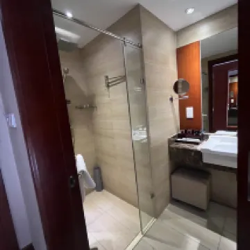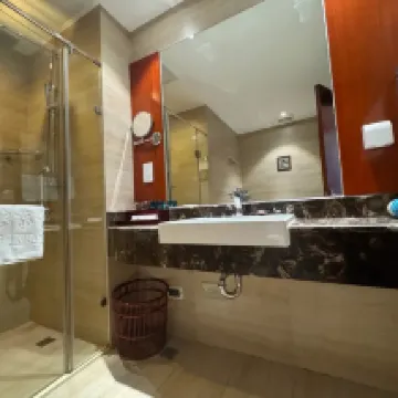 酒店房間寬敞明亮,床品舒適,衞生間大乾濕分離,早餐品種豐富,停車方便。周邊餐飲餐廳較多,離大商場步行可達。