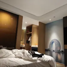 免費升級了房型,特別喜歡晚上的粥到,早餐也不錯,地下停車場免費,房間舒適,床品柔軟,睡起來很舒服,有機器人免費送餐哦。