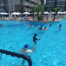 В седьмой раз приезжаем в этот отель. Море волшебное! Погода во второй половине сентября идеальная. Потрясающие закаты с видом солнца заходящего в горы. Море тёплое даже ночью (купались). В отеле Как и обычно, очень радушный персонал. Изначально поселили в номер на 3 этаже, но утром следующего дня переселили потнашей просьбе на первый этаж. Заела дверь между комнатами - сразу пришел техник починил. Официанты, бармены, анимационная команда - все очень общительные и радушные. Особенно бармен Эврен! Лучшие коктейли!!! Бармены Мурат и Энес. Бармен пляжа Суна! Официтанты Дилан, Мерве, Мехмет. Шеф ресторана Айдн, шеф бара Ясин и менеджер ресторана Ялмаз - приятнын и гостеприимные сотрудники отеля! Конечно, необходимо сказать о кухне Шефа Мурата! Кухня изменилась с прошлых лет, но большой выбор вкусной и полезной еды! В цоколе отеля есть кофейня с зерновым - можно выпить латте. Бариста Фатьма обязательно радушно встретит. И, конечно, анимационная команда! В жиом году команда большая! Все молодцы и активные, но особо хочется отметить DJ Али! Очень красивая улыбка! Очень любит детей! Подборка музыки на дискотеках и пенных вечеринках - огонь! И менеджер анимации Нелли! Не первый год её видим в этом статусе. Очень приятный человек! Знает много языков. Вечером можно приятно провести время за беседой после шоу. Следит всегда за порядком и работой всей анимации. Очень внимательна у деталям! Всегда следит, чтобы и большие и маленькие гости были довольны.