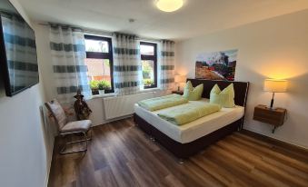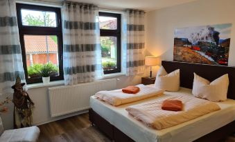 Wir waren mit zwei Familien in diesem Ferienhaus. Vom Anfang bis zum Ende hat hier alles sehr gut funktioniert. Die Buchung über fewo-direkt.de verlief problemlos und transparent. Die Kommunikation vor der Anreise mit den Vermietern verlief ebenfalls problemlos. Auch während unseres Aufenthalts waren diese telefonisch schnell erreichbar und standen mit Tipps zu Ausflugszielen bereit. Das Haus selbst bietet Platz für 8 Personen und ist ausreichend ausgestattet. In der Küche findet man alles was gebraucht wird um auch selbst zu kochen. Die Zimmer sind zum größten Teil mit modernen Fernsehern ausgestattet. Alles in allem haben wir uns in der Woche sehr wohl gefühlt. Die Nähe zu Wernigerode und dem Harz ist ein weiterer Pluspunkt für dieses Haus. Wir werden bestimmt nochmal wiederkommen.